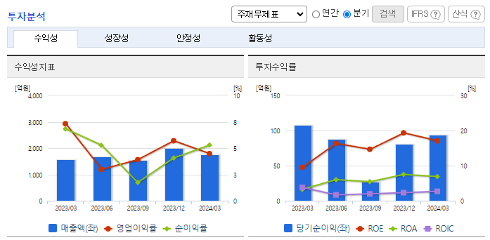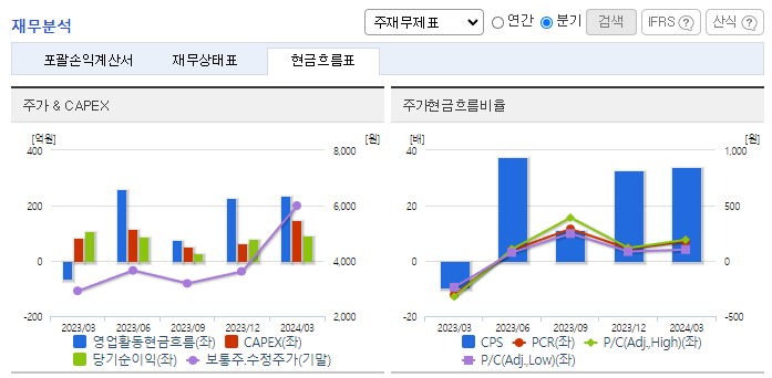 -2024년 3월 전년동기 대비 연결기준 매출액은 12.5% 증가, 영업이익은 31.2% 감소, 당기순이익은 15.8% 감소. 동사는 완성차 판매 호조에 따른 탑라인 성장, HEV 물량 확대에 따른 마진율을 개선함. 2022년 출시한 폭스바겐 전기차 전용 MEB 플랫폼 차량 ID BUZZ 의장부품 공급업체로 선정되는 등 코리아에프티는 유럽 자동차 부품 공급 파트너로 자리 잡고 있음.