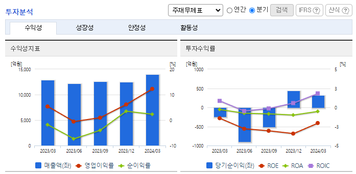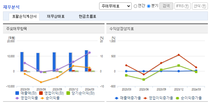 -2024년 3월 전년동기 대비 연결기준 매출액은 9.1% 증가, 영업이익은 149.7% 증가, 당기순이익 흑자전환 했음. DL케미칼 수익성 개선과 에너지 성수기 효과로 매출 증가하였으며 이자비용 및 환율 상승 영향으로 당기순이익 흑자전환함. 지분 50%를 보유하고 있는 디타워 돈의문의 매각을 추진하고 있음. 종속회사인 DL에너지는 교통 전기화 및 AI향 수요 급증을 고려해 미국 민자 발전시장에서 사업을 확대할 계획임.
