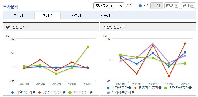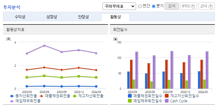 -2024년 3월 전년동기 대비 연결기준 매출액은 0.2% 증가, 영업이익은 17.6% 감소, 당기순이익은 28.9% 감소. 필름 합작법인(JV) 설립에 따른 일회성 비용이 발생하면서 수익이 감소하였음. 부진한 사업을 정리하고 폐배터리 재활용 사업으로 배터리 시장에 진출하는 등 신사업 육성으로 수익 다각화에 나섰음. 폐배터리 재활용은 전기차 시장 고성장의 수혜를 입을 유망 사업으로 평가받고 있음.