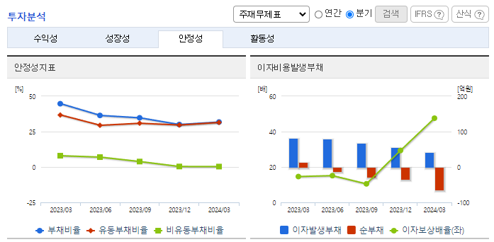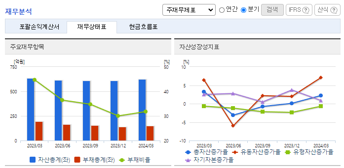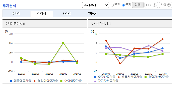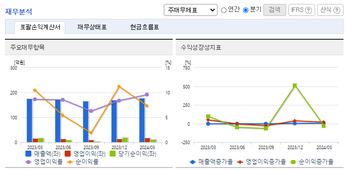 -2024년 3월 전년동기 대비 연결기준 매출액은 0.9% 증가, 영업이익은 12.2% 증가, 당기순이익은 29.5% 감소. 가전 수요가 크게 증가하기 시작하였고, 이러한 뉴라이프 가전 시장의 증가는 향후에도 지속해서 가전 시장의 성장을 이끌 것으로 판단됨. 신규제품(체어큐) 판매하려고 사업목적을 추가하였으나 판매가 저조하여 신규제품판매보다는 기존사업(생활가전 및 보안솔루션 부품 판매)에 집중하기로 결정함.