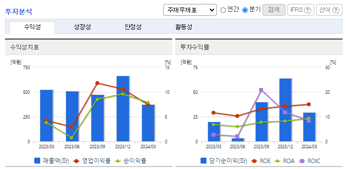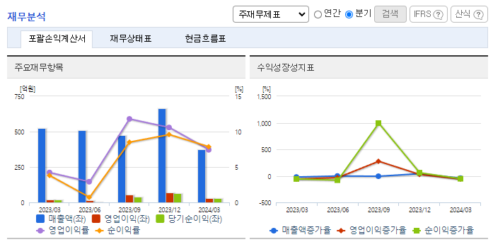 -2024년 3월 전년동기 대비 연결기준 매출액은 29.1% 감소, 영업이익은 24.7% 증가, 당기순이익은 46.5% 증가. AI 네트워크·데이터센터 투자 사이클은 이제 시작 국면이며, 전년 대비 30∼40%가량의 성장을 기대하고 사업계획을 세우고 있음. 올해는 (하드웨어 대비) 이익률 높은 소프트웨어 매출의 증대가 기대됨. 1분기 매출은 사업 조정을 통한 일시적인 상황이며 하반기 갈수록 매출액과 이익이 증가할 것으로 전망됨.