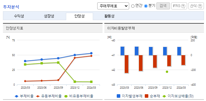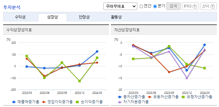 -2024년 3월 전년동기 대비 연결기준 매출액은 65.5% 증가, 영업손실은 26.9% 증가, 당기순손실은 3.8% 감소. 동사는 메인넷인 위믹스 3.0을 론칭하였고, 스테이블 코인인 위믹스 달러도 발행하였으며, 디파이플랫폼인 WemixFi도 출시하면서 블록체인 시장에서 다양한 사업 확대를 시도하고 있음. 동사는 매출액 대비 인건비 및 복리후생비, 판관비 등 비용이 증가하였고, 당기순손실은 감소했으나 손실은 지속됨.