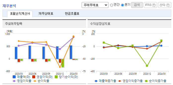 -2024년 3월 전년동기 대비 연결기준 매출액은 11.7% 증가, 영업손실은 70.2% 감소, 당기순손실은 63.1% 감소. 동사는 차세대 골관절염 치료제 SP5M002 임상 3상시험에 속도를 내고 있음. 환자모집을 마무리하고 후속 연구를 진행 중임. 동사는 SP5M002 외에도 골관절염 치료제 SP5M001를 개발했고, 지난해 10월 품목 허가를 식약처에 신청했음. 허가 시 올해 4분기에서 2025년 1분기에 출시할 예정임.