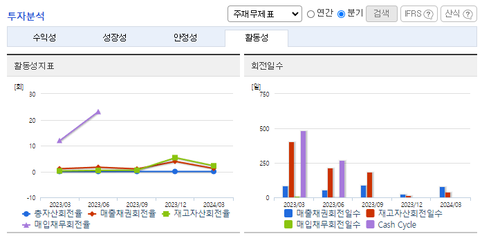 -2024년 3월 전년동기 대비 별도기준 매출액은 98% 증가, 영업손실은 16% 증가, 당기순이익 흑자전환. 기술이전 및 용역 매출액이 증가함에도 연구개발비 및 지급수수료와 같은 판관비 및 인건비 또한 증가하여 영업손실폭이 확대됨. Joint Development (공동개발 및 사업화) 사업모델에서 국내외 유수의 학회에 당사 기술에 대한 연구 논문 발간 통한 전문가 수준의 홍보에 노력.