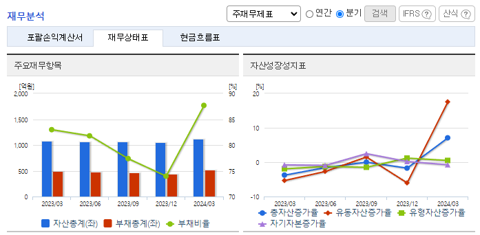 -2024년 3월 전년동기 대비 연결기준 매출액은 11.9% 증가, 영업이익 흑자전환, 당기순이익은 1.3% 증가. 카톤팩시장은 최근 세계 경제의 침체와 국제금융위기에 따른 경기회복 지연에 따른 여파에도 제조위생환경변화 및 loss률 감소로 통해 원가절감으로 판매력을 증대시키기 위해 노력하고 있음. 플라스틱용기 사업에서 무균밥용기 및 커피음료컵 시장의 성장에 힘입어 꾸준한 매출실적을 내고 있음.