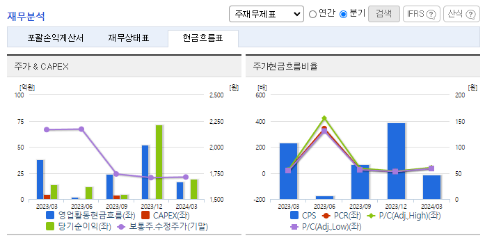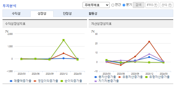 -2024년 3월 전년동기 대비 연결기준 매출액은 5.5% 감소, 영업이익은 15.6% 감소, 당기순이익은 40.2% 증가. 고수익 특수사료의 매출 증대와 생산구조 개선으로 손익을 증가시키고 지속적인 구조조정을 통해 원가절감 및 수익성을 보장하는 판매 전략을 구축하고 있음. 시장의 흐름을 파악하여 신제품 개발 및 품질 유지에 지속해서 투자하고 있으며, 동물에 대한 친화적인 인식개선과 기업 이미지 제고를 위해 꾸준히 노력하고 있음.