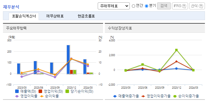 -2024년 3월 전년동기 대비 연결기준 매출액은 40.5% 증가, 영업이익 흑자전환, 당기순이익은 1,883% 증가. 동사는 매출처 다변화로 수익구조 개선, 구매 원가 및 개발 비용 절감으로 매출원가가 감소하여 영업이익 및 당기순이익 큰 폭으로 증가하였음. 미국의 ACTIFIO사와 총판계약을 체결하여 국내 스토리지 가상화 시장에 진출함. 스마트카드 사업분야에는 독일 오토쿠니케와 총판계약 체결 후 사업을 확대하고 있음.