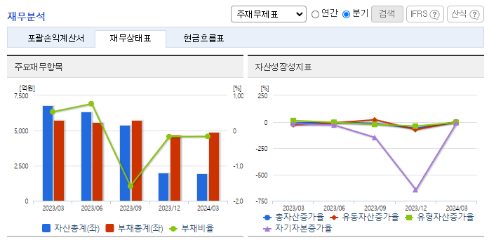 -2024년 3월 전년동기 대비 연결기준 매출액은 87.5% 감소, 영업손실은 45.5% 감소, 당기순손실은 16.3% 감소. 주방/생활가전 순매출액 마이너스는 주문 매출액보다 장려금, 할인, 에누리 등 정책지원금액이 크기 때문에 발생되었음. (순매출액 = 주문매출액 - 장려금 + 할인금액 + 에누리) 1인 가구 증가와 제품의 다변화 등 다양한 요소가 결합되어 국내 렌탈시장의 지속적인 성장 예상됨.