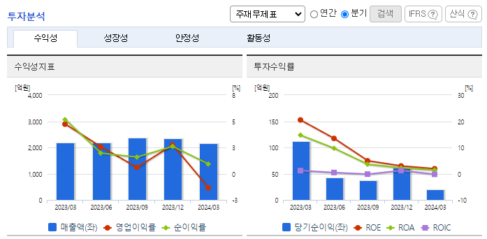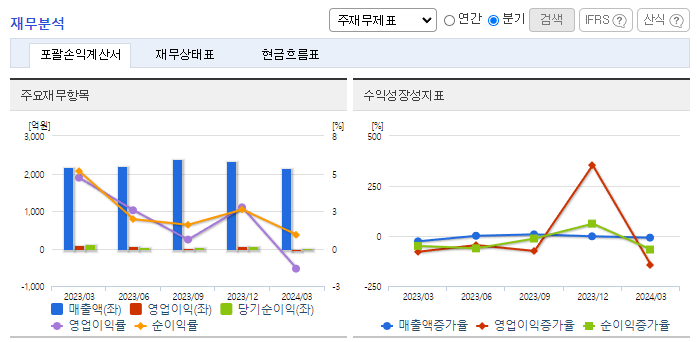 -2024년 3월 전년동기 대비 연결기준 매출액은 1.3% 감소, 영업이익 적자전환, 당기순이익은 82.4% 감소. 동사의 매출액은 전년동기 대비 소폭 감소한 데다가 PCB제조에 쓰이는 CCL, PREPREG 등의 원재료 가격이 증가하고 인건비도 상승되어 영업이익이 적자전환됨. 반도체패키지는 메모리패키지가 감소했으며, 글로벌 자동차 시장 둔화로 인해 전장향 물량 또한 위축되었으나 모바일 수요는 증가하였음.