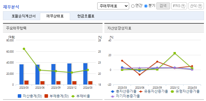 -2024년 3월 전년동기 대비 연결기준 매출액은 1.7% 증가, 영업이익은 11.4% 감소, 당기순이익은 13.9% 감소. 에프앤에프는 자사가 주도적으로 상품 로테이션 등을 실시하여 판매율을 높여 효율적으로 매출 확보를 도모하고 있음. 동사의 2024년 1분기 매출액은 소폭 상승하였지만 모자, 가방 외 상품과 외주가공비 원재료 가격 또한 상승하여 영업이익이 감소하였음.