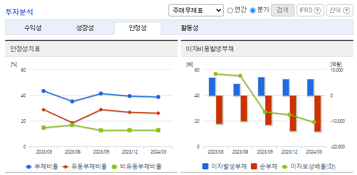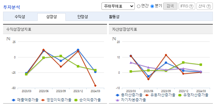 -2024년 3월 전년동기 대비 연결기준 매출액은 11.8% 감소, 영업이익은 44.6% 감소, 당기순이익은 25.4% 감소. 글로벌 경제 불확실성 및 전방산업 수요둔화 등 어려운 경영환경 속에서 2024년 1분기 제조 OEM, SCOTT 사업부문의 매출액이 감소함. 해외 현지공장에 지속적인 설비투자 및 생산성 향상을 위한 다양한 노력을 통해 경쟁력강화를 모색하고 있음.
