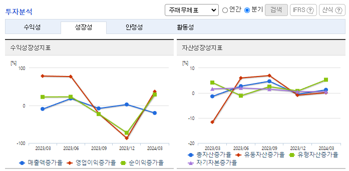 -2024년 3월 전년동기 대비 별도기준 매출액은 9.9% 감소, 영업이익은 75.7% 감소, 당기순이익은 66.6% 감소. PB배관재는 위생성, 강도, 시공의 편리성 등 우수한 특성을 지니고 있어 수요가 증가 추세에 있으며, 사용범위가 급수용에서 난방용 등으로 점차 확대되고 있음. C-PVC배관재는 기존 소방배관의 금속관을 대체하여 성장하는 추세이며, 금속관에 비해 가볍고 시공방식이 용이하여 매년 지속적인 매출성장을 보이고 있음.
