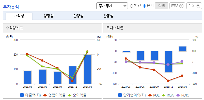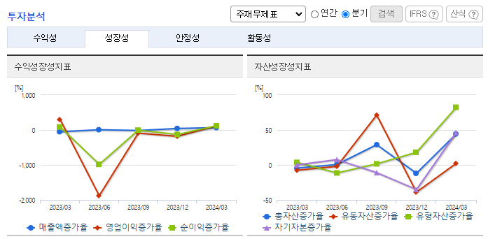 -2024년 3월 전년동기 대비 연결기준 매출액은 122.1% 증가, 영업이익은 1,630.7% 증가, 당기순이익 흑자전환. 올해 연결회사로 편입된 아이엘모빌리티 매출이 반영되었으며, 하이패스 부문 및 단가 높은 제품들이 조달청을 통해 판매된 효과가 외형 성장을 견인함. 효율적인 시스템 구축과 신기술개발의 지속적인 투자가 본격적인 성과로 이어지면서 영업이익이 크게 증가함.