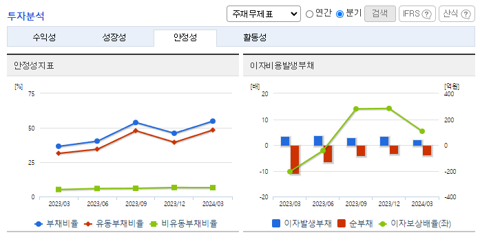 -2024년 3월 전년동기 대비 연결기준 매출액은 50.5% 증가, 영업이익 흑자전환, 당기순이익 흑자전환. 방산 및 기타 사업부문도 견조한 실적 성장을 보였지만, 통신사업부문의 매출액 급증 효과로 외형이 큰 폭으로 성장했고 영업손익과 순손익 모두 흑자전환에 성공함. 방산부문은 주요 고객사와 유도무기 신호처리 장치 외 탐색기 등의 핵심 부품을 지속적으로 개발, 통신부문은 장비 공급업체와 공동으로 개발하여 BMT에 참여 중임.