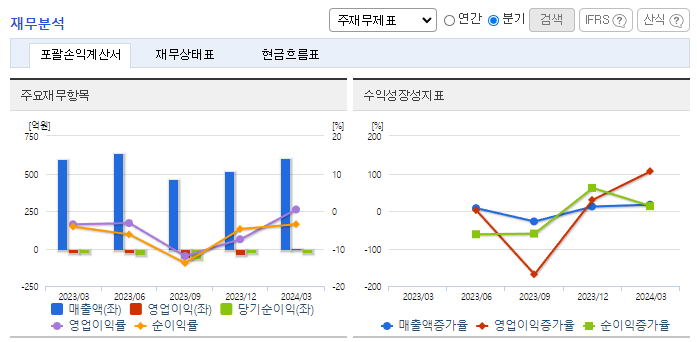 -2024년 3월 전년동기 대비 연결기준 매출액은 1.7% 증가, 영업이익 흑자전환, 당기순손실은 13.2% 감소. eM 플랫폼 공용부품으로 적용될 크로스멤버를 현대자동차로부터 직접 수주하였으며, 이를 생산하기 위해 3년에 걸쳐 약 570억 원의 대규모 투자가 진행될 예정임. eM 플랫폼에 대한 양산 프로젝트를 추진하고 있으며, 현재 개발 단계인 2025년 출시 제품을 시작으로 신형 전기차 모델 등에 순차 적용될 예정음.