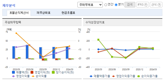 -2024년 1분기 전년동기 대비 별도기준 매출액은 0.3% 감소, 영업손실은 20.3% 증가, 당기순이익 적자전환. 2023년 말 기준 수출이 동사 매출의 약 38%를 차지하고 있으며 사업의 지속적인 성장을 위하여 공격적으로 해외시장을 개척해 나가고 있음. 현재 동사는 국내외 고객사의 요구에 맞추어 기존 보유 제품에 대한 시리즈화(ex. 로봇용 감속기 모델 라인업 확대 등) 및 응용 제품 개발에 역점을 두고 사업을 추진할 계획임.