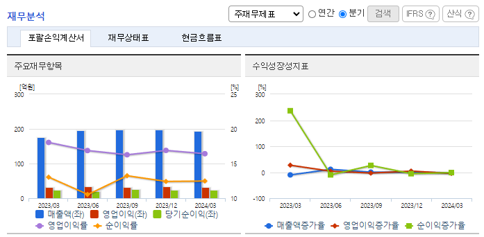 -2024년 3월 전년동기 대비 연결기준 매출액은 10.1% 증가, 영업이익은 0.2% 증가, 당기순이익은 5.4% 증가. 동사는 이탈리아, 프랑스, 스페인등 유럽 해외 식자재 업체로부터 제품을 수입 중. 안정적인 원가 관리로 적자 없이 꾸준히 매출과 이익이 우상향 중. 주력제품인 유가공품, 면류, 오일류 등의 계절성이 크지 않아 안정적으로 매출 시현되고 있어 수익 안정성에서 강점을 가짐.