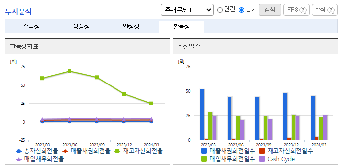 -2024년 3월 전년동기 대비 연결기준 매출액은 29.2% 증가, 영업이익은 2.9% 증가, 당기순이익은 124.6% 증가. 계열사인 JBL그룹의 제주사업 매출 반영과, 종속기업인 세방익스프레스와 세방메탈트레이딩의 약진이 매출증가 주요인으로 작용함. 동사의 화물운송과 보관(창고) 사업 매출도 소폭 상승함. 신성장 물류 영업활동 추진, 중량물 운송장비(SPMT) 사업확대, 미국물류법인을 통한 북미시장 공략 및 안정화에 매진할 계획임.