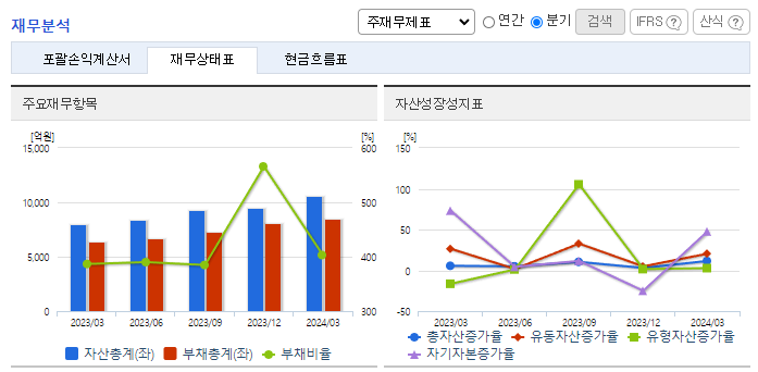 -2024년 3월 전년동기 대비 별도기준 매출액은 22.1% 증가, 영업이익은 16% 증가, 당기순이익은 13.8% 증가. 2024년은 미 연준의 금리 정책, 중국발 경기 침체, 우크라이나, 이스라엘 전쟁 등의 영향으로 연초부터 유가, 환율, 금리의 변동성이 큰 상황이었음. 그러나 공격적인 영업 활동을 통해 창립 이래 역대 1분기 최대 실적을 다시 한번 경신함.