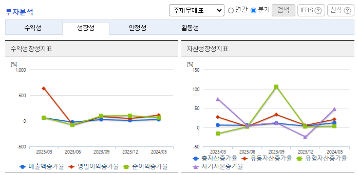 -2024년 3월 전년동기 대비 별도기준 매출액은 22.1% 증가, 영업이익은 16% 증가, 당기순이익은 13.8% 증가. 2024년은 미 연준의 금리 정책, 중국발 경기 침체, 우크라이나, 이스라엘 전쟁 등의 영향으로 연초부터 유가, 환율, 금리의 변동성이 큰 상황이었음. 그러나 공격적인 영업 활동을 통해 창립 이래 역대 1분기 최대 실적을 다시 한번 경신함.
