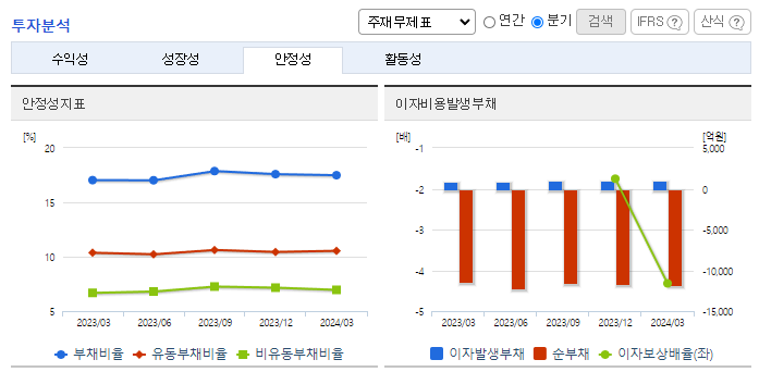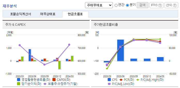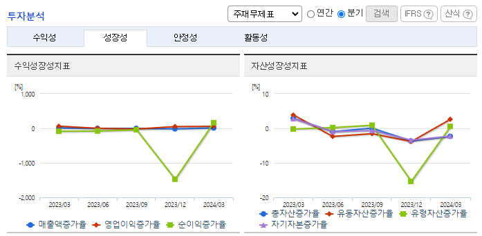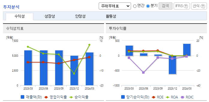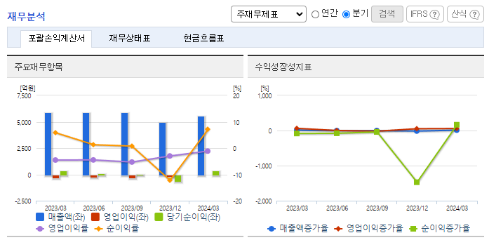 -2024년 3월 전년동기 대비 연결기준 매출액은 5.7% 감소, 영업손실은 76.5% 감소, 당기순이익은 15.1% 증가. 주력인 석유화학제품의 판가 하락으로 다소 부진한 매출을 기록함. P-X 및 프로판 등 주요 원재료의 상대적 하락폭이 크고 판관비 감소로 인해 수익성은 큰 폭으로 증가한 모습. 내수시장 거래처 확보 등 판매구조 다변화 및 중국 등의 해외 직판 장기계약 체결로 고정거래선 확보 노력 지속 중.