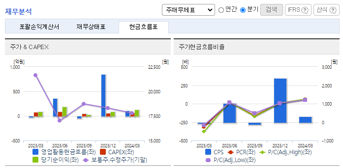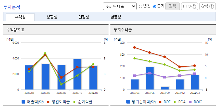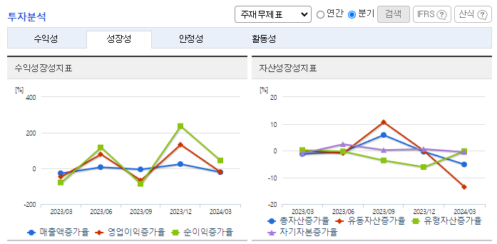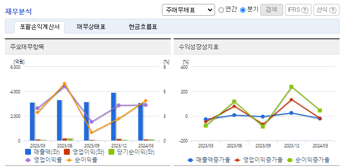 -2024년 3월 전년동기 대비 연결기준 매출액은 0.9% 감소, 영업이익은 8.9% 증가, 당기순이익은 41.4% 증가. 동사의 재고자산은 9.7% 줄어듦. 구매 패턴이나 트렌드를 분석해 재고 물량을 탄력적으로 조절하고 생산과 유통 방식을 개선해 재고 효율화를 크게 높였음. 동사는 향수사업과 같은 뷰티사업의 성장이 돋보였음. 자체 화장품 브랜드 '연작'과 고가 스킨케어 라인 '알파낙스'를 선보이며 럭셔리 화장품 시장도 공략 중임.
