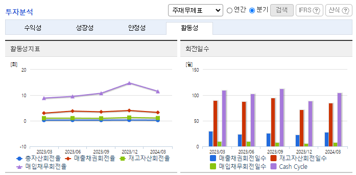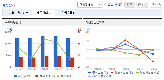 -2024년 3월 전년동기 대비 연결기준 매출액은 0.9% 감소, 영업이익은 8.9% 증가, 당기순이익은 41.4% 증가. 동사의 재고자산은 9.7% 줄어듦. 구매 패턴이나 트렌드를 분석해 재고 물량을 탄력적으로 조절하고 생산과 유통 방식을 개선해 재고 효율화를 크게 높였음. 동사는 향수사업과 같은 뷰티사업의 성장이 돋보였음. 자체 화장품 브랜드 '연작'과 고가 스킨케어 라인 '알파낙스'를 선보이며 럭셔리 화장품 시장도 공략 중임.