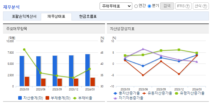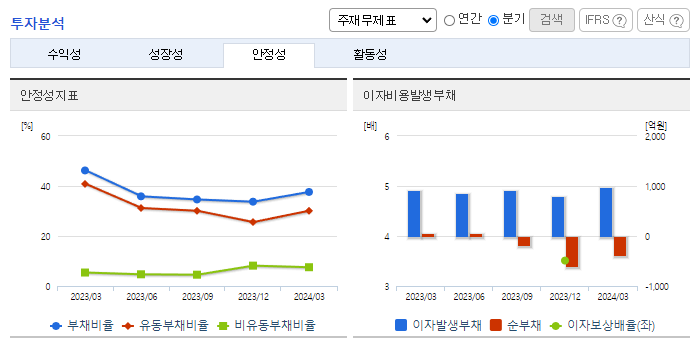 -2024년 3월 전년동기 대비 연결기준 매출액은 19.5% 감소, 영업이익은 32.8% 감소, 당기순이익은 28.5% 감소. DDR5가 3Q2024부터 DDR4 점유율을 역전할 것으로 추정함에 따라 IDM 업체 향으로 DDR5용 패키징 기판을 공급하는 동사 역시 수혜가 이어질 것으로 보임. 마진율 20~25% 수준으로 추정되는 전장용 리드프레임의 매출 회복으로 수익성도 전부기 대비 2.3% 증감됨.
