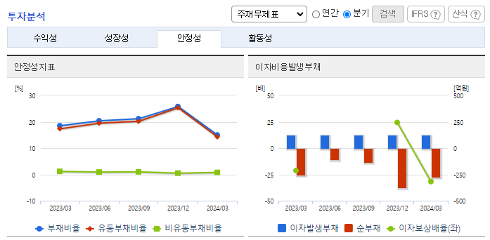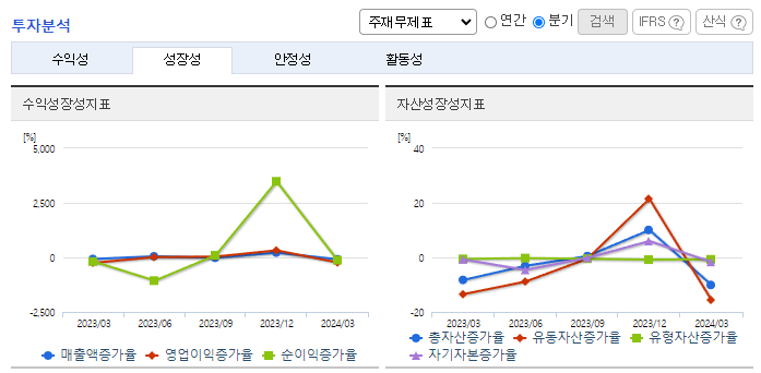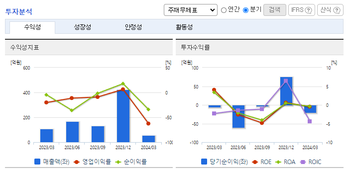 -2024년 3월 전년동기 대비 연결기준 매출액은 48.3% 감소, 영업손실은 61.3% 증가, 당기순손실은 276.7% 증가. PTN(음성과 데이터 등 다양한 형태의 유. 무선 서비스를 단일 통신망에서 제공하는 전송장비) 등 주력 제품의 실적 부진으로 적자 지속됨. 제품 라인업 다양화, 차세대 POTN 제품의 확대 및 T-SDN기술, AI기술과 무선 프론트홀과 백홀기술 등을 접목한 신제품을 5G 이동통신망 구축에 집중할 계획임.