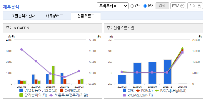 -2024년 3월 전년동기 대비 연결기준 매출액은 9.5% 증가, 영업이익은 370% 증가, 당기순이익은 50.4% 증가. 식품부문의 매출이 3.2%, 화학부문의 매출이 16.0% 증가하면서 전체 매출이 증가하였음. 매출원가가 매출 증가분보다 적게 증가하여 영업이익 크게 증가함. 계열사 지원 자금으로써 1800억 규모의 공모채를 발행해 향후 지주사와 계열사 사업 진행 상황에 따라 집행할 잠재적 지원 자금으로 활용할 예정.