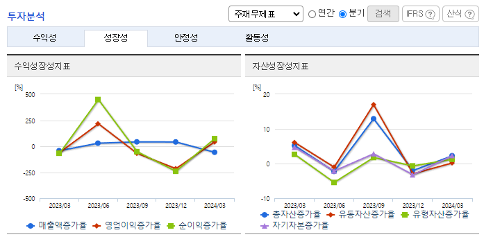 -2024년 3월 전년동기 대비 연결기준 매출액은 8.3% 증가, 영업이익은 적자전환. 중국 최대의 온라인 전자상거래 기업인 알리바바에서 운영하는 티몰과 협업을 하고 있으며 향후 유통 플랫폼을 오프라인으로 확대하여 동사의 성장동력으로 구축 예정. 2023년 7월 연간 6000톤의 합성운모 산업기지를 건설 계획을 공시하였으며 2024년 1월 완공 시 세계 3대 합성운모의 생산기지가 될 전망.