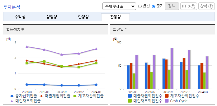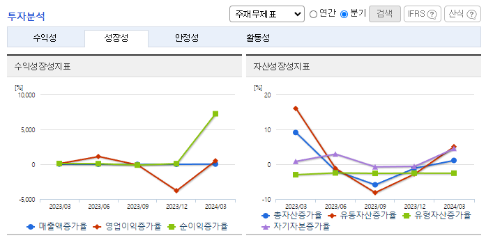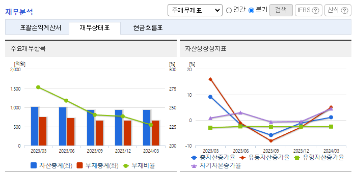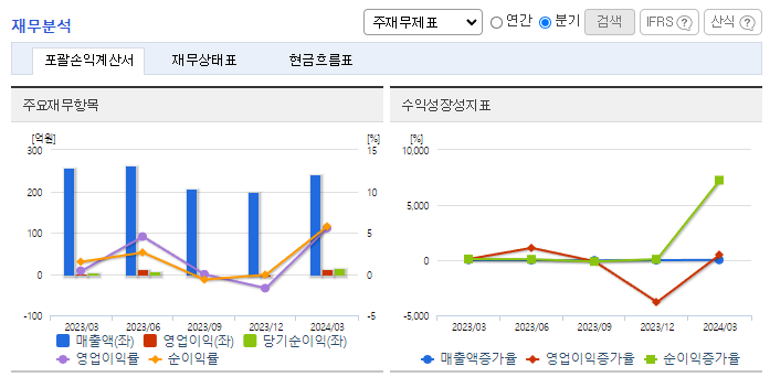 -2024년 3월 전년동기 대비 연결기준 매출액은 6.9% 감소, 영업이익은 1260.2% 증가, 당기순이익은 263.4% 증가. 최악 황사에도 공기청정필터 판매 및 여과지 판매 감소로 외형은 소폭 감소했으나, 원가절감 노력으로 영업이익은 큰 폭의 성장세를 보임. 적극적인 판매전략 및 아이템 개발을 통하여 판매 확대 및 생산량 증가를 통한 원가 절감을 위해 노력하고 있음.