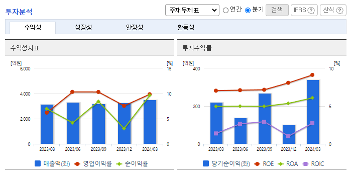 -2024년 3월 전년동기 대비 연결기준 매출액은 11.5% 증가, 영업이익은 77.4% 증가, 당기순이익은 54.6% 증가. 매출의 대부분을 구성하고 있는 자동차용 커넥터, 전자모듈, 전자용 커넥터 부문에서의 매출 상승으로 인해 수익성이 강화되었음. 2024년 자동차부문 제품평균가격이 전년동기대비 4% 증가하였으며, 전자부문의 경우 제품 평균 가격은 전년동기대비 동결되었음.