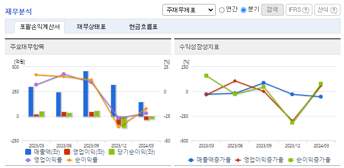 -2024년 3월 전년동기 대비 연결기준 매출액은 51.2% 감소, 영업이익 적자전환, 당기순이익 적자전환. 북유럽·아시아·아프리카·남미 등에 이어 파푸아뉴기니 전력공사와 에너지 운용개선을 위한 78억 원 규모 AMI 프로젝트 공급계약을 체결하였음. 파푸아뉴기니 전력공사가 발주한 첫 번째 AMI 프로젝트를 한국업체가 수주해 파푸아뉴기니 AMI 시장을 선점했다는 데 의미가 있음.