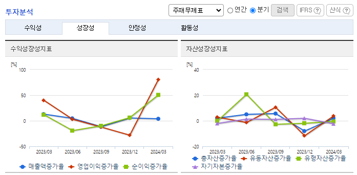 -2024년 3월 전년동기 대비 별도기준 매출액은 1.4% 증가, 영업이익은 17.2% 증가, 당기순이익은 16.4% 증가. 신규제품 및 거래처 증가로 인해 매출은 확대되었으며, 원가절감 및 효율성 제고등의 영향으로 영업이익은 성장세를 유지함. VAN사업부문 및 무인화사업부문의 매출 확대를 위하여 최선의 영업활동과 연구개발활동을 진행 중이며, 지속적인 노력을 통해 수익 다각화를 모색함.