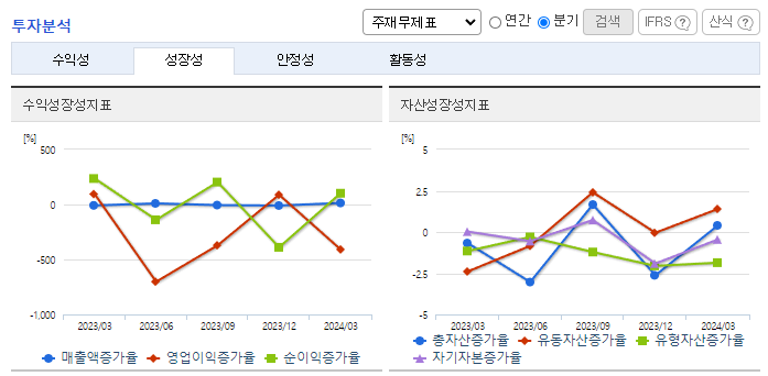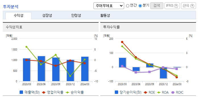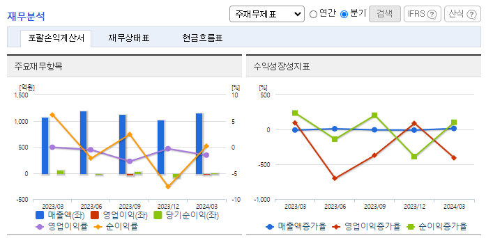-2024년 3월 전년동기 대비 연결기준 매출액은 7.4% 증가, 영업손실은 2120.5% 증가, 당기순이익은 97.2% 감소. 매출의 주를 이루는 봉강과 합금철 부문에서의 전년 동기 대비 견조한 매출 상승으로 매출액은 다소 증가하였으나, 매출원가 및 판관비에서의 비용 상승으로 영업손실 지속하였음. 수출에서는 다소 부진한 반면, 내수 매출액이 상승하여 전년 동기 수준의 매출 달성.