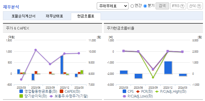 -2024년 3월 전년동기 대비 별도기준 매출액은 47.2% 증가, 영업이익은 376.9% 증가, 당기순이익은 167.3% 증가. 국내 조선소의 공정이 안정화되며 저속엔진 출하량과 부품 판매가 증가함. 이에 외형이 확대되고 원가율 개선에 성공해 영업이익이 대폭 증가함. 국내 빅3 조선소의 공정 정상화가 조선업 공급망 전반에 긍정적 효과를 낼 것으로 예상되며 2024년 1분기에는 납품 지연이 발생하지 않아 실적 상승이 기대됨.