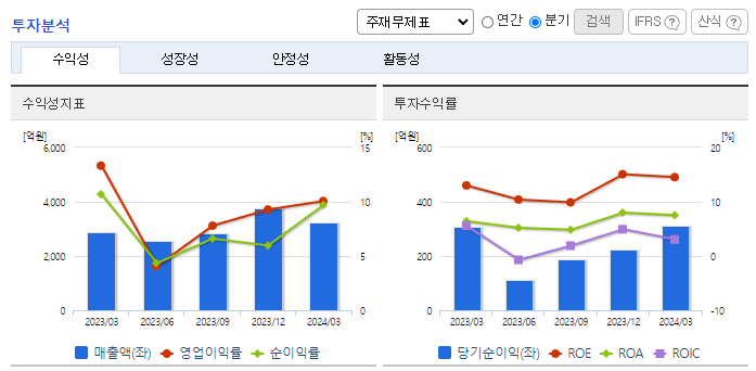 -2024년 3월 전년동기 대비 연결기준 매출액은 11.7% 증가, 영업이익은 15.6% 감소, 당기순이익은 1.5% 증가. 동사의 매출액은 제품상품, 공사 및 용역, 운송 매출 모두 전년동기 대비 증가하였으나 물류비와 같은 비용 또한 증가하여 영업이익이 감소함. '나비엔 콘덴싱 ON AI' 출시를 통해 소비자 온수 사용의 불편함을 해소하며 '온수가전'으로 보일러 시장의 패러다임 전환에 나섬.