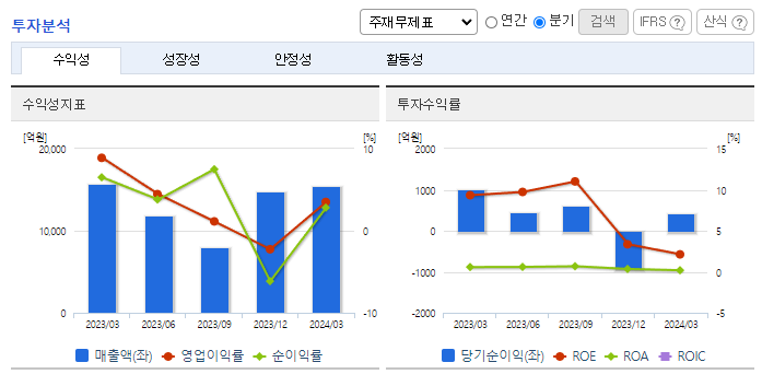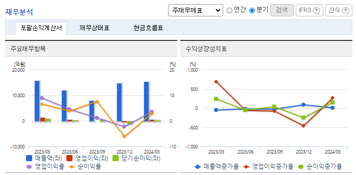 -2024년 3월 전년동기 대비 연결기준, 영업이익은 61.2% 감소, 당기순이익은 57.5% 감소. 전 업계가 할인율 제도 변경 영향을 크게 받았음. IFRS17에서도 3천억 원 이상 수준의 영향을 받았고 그 부분이 K-ICS에서도 영향을 미침. 동사의 대체투자 자산은 약 6조 원 수준. 문제가 되고 있는 것은 미국 상업용 부동산임. 해당 펀드들의 선순위 조건 변경 혹은 펀드 만기 시 조건에 따라 일부 손실을 인식할 수 있다고 밝힘.