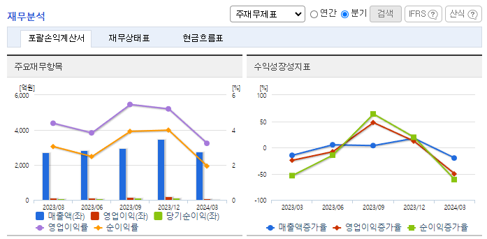 -2024년 3월 전년동기 대비 연결기준 매출액은 2.1% 증가, 영업이익은 24.7% 감소, 당기순이익은 27.3% 감소. SM사업의 매출은 전체사업의 18%, SI 사업 매출은 75%, 전기차 충전사업은 7%를 구성하고 있으며, 전기차 충전 사업을 통한 매출성장이 이루어짐. 향후 롯데 계열사 및 다양한 회사와의 협업을 통해 다양한 종류의 NFT를 판매할 계획을 가지고 있으나, 구체적인 방식은 정해지지 않았음.