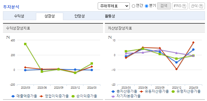 -2024년 3월 전년동기 대비 연결기준 매출액은 7.7% 증가, 영업이익은 6.8% 증가, 당기순이익은 16.8% 감소. 중국과 일본, 베트남 등 글로벌 진출 확대가 실적을 견인함. 화장품 사업이 순항하며 전년동기 대비 늘어난 실적을 달성함. 지난 4월 국내 유통사와 손잡고 미국 화장품 시장 진출을 본격화함. 동사의 화장품 브랜드 ‘루나’는 지난 3월 진행된 큐텐 재팬의 대규모 할인행사 메가와리에서 최고 실적을 거두었음.
