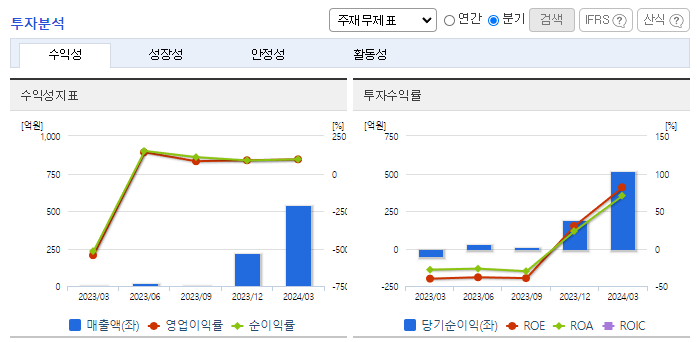 -2024년 3월 전년동기 대비 연결기준, 영업이익 흑자전환, 당기순이익 흑자전환. 동사는 세계경기 위축 가능성 등 국내외 환경변화의 부침이 심한 상황을 감안하여 산업의 성장성 및 시장수요가 큰 친환경 에너지 및 바이오, 통신단말 관련 IT산업, 4차 산업에 대한 투자를 확대할 예정임. 감사의견 거절로 거래정지됐으나, 빠른 시일 내에 재감사를 통해 거래재개에 나선다는 계획임. 한편 동사는 2년 만에 흑자 전환하였음.