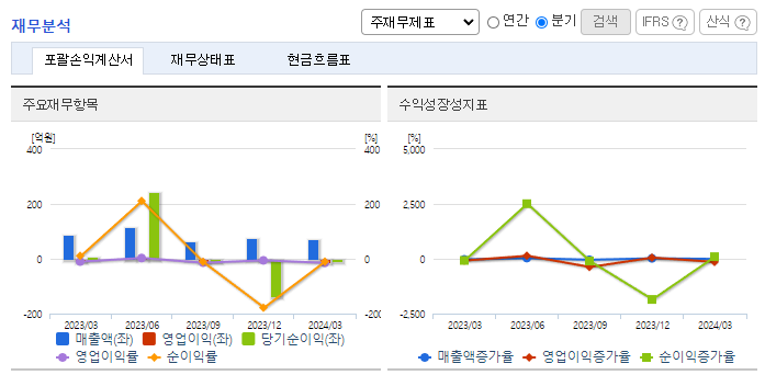 -2024년 3월 전년동기 대비 연결기준 매출액은 19.9% 감소, 영업손실은 16.6% 증가, 당기순이익 적자전환. 진공밸브 부문에서 7억, 반도체 장비부품에서 10억 가량의 매출 하락이 발생. 엔투텍이 최대주주로 있는 지오릿 에너지의 자회사 엑스트라릿이 이스라엘로부터 직접리튬추출 기술을 인정받고 지원금도 받음. 지속된 리튬기술 발전으로 엔투텍에도 수헤가 기대됨.