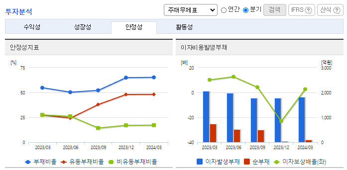 -2024년 3월 전년동기 대비 연결기준 매출액은 2% 증가, 영업이익은 81.5% 감소, 당기순이익은 49.6% 감소. 과거 3분기 인식하던 방송발전기금이 올해부터 분기별 인식으로 회계처리를 변경하였고, 자회사 콘텐츠 투자로 인한 무형자산상각비도 증가하였음. GTS 가입자 감소로 TV서비스 매출액이 감소하였음에도 인터넷 및 모바일 가입자 순증으로 통신서비스 매출이 증가하며 별도기준 매출은 증가함.