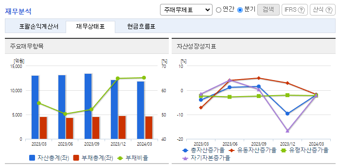 -2024년 3월 전년동기 대비 연결기준 매출액은 2% 증가, 영업이익은 81.5% 감소, 당기순이익은 49.6% 감소. 과거 3분기 인식하던 방송발전기금이 올해부터 분기별 인식으로 회계처리를 변경하였고, 자회사 콘텐츠 투자로 인한 무형자산상각비도 증가하였음. GTS 가입자 감소로 TV서비스 매출액이 감소하였음에도 인터넷 및 모바일 가입자 순증으로 통신서비스 매출이 증가하며 별도기준 매출은 증가함.