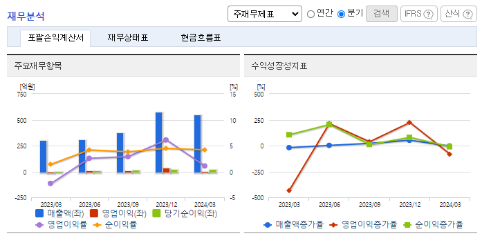 -2024년 3월 전년동기 대비 연결기준 매출액은 82.1% 증가, 영업이익 흑자전환, 당기순이익은 441.3% 증가. 액추에이터용 자동화 설비 등을 자체 제작하여 카메라 모듈 및 액추에이터 제조기업에 납품하고 있으며, 향후 다양한 자동화 분야에 적용할 수 있는 설비 등을 개발 중. 2024년 출시 예정인 플래그십 모델의 폴디드줌(Folded-Zoom) 생산 물량 확대로 매출 상승세 지속이 기대됨.