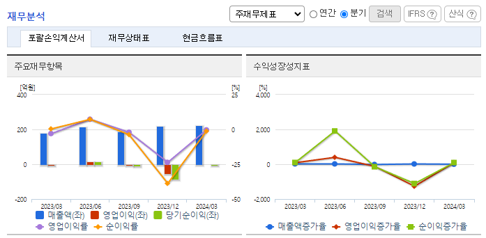 -2024년 3월 전년동기 대비 연결기준 매출액은 25% 증가, 영업손실은 86.3% 감소, 당기순손실은 654.4% 증가. 전 세계적인 팬데믹 상황의 회복과 중국의 리오프닝 정책변화 등의 영향으로 글로벌 항공운항사들의 실적개선이 가시화되어 이전의 수준으로 빠르게 회복되고 있는 상황임. 하이즈복합재산업은 드론의 개발 및 생산에 집중하고, HIZE USA를 통해 드론사업의 운영 노하우 및 물류에 대한 역량을 높일 예정임.