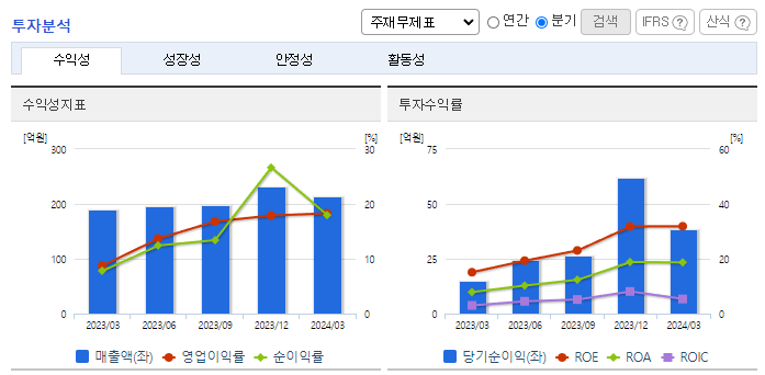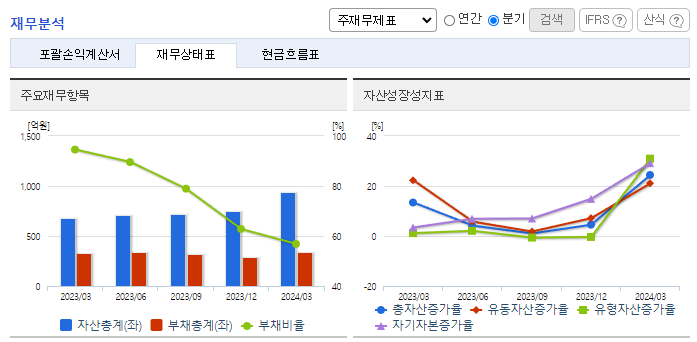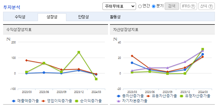 -2024년 3월 전년동기 대비 별도기준 매출액은 12.8% 증가, 영업이익은 135.4% 증가, 당기순이익은 159.4% 증가. 전방산업인 조선업 업황이 회복되며 제품 매출 증가로 외형이 성장함. 또한 원가율이 개선되며 전년동기 대비 영업이익이 대폭 개선됨. 주력 사업인 엔진부품사업 이외에 철강재 및 스크랩 상품 유통 사업 등 사업 다각화를 통해 매출 안정화를 꾀하고 있음.