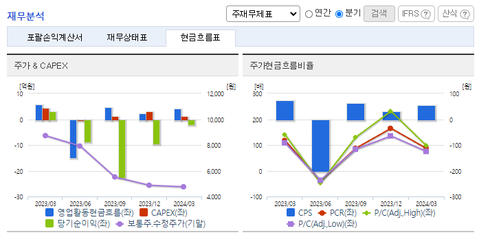 -2024년 3월 전년동기 대비 연결기준 매출액은 3.5% 감소, 영업손실은 56.6% 감소, 당기순이익 적자전환. 매출액은 소폭 감소했지만, 매출원가와 판관비가 16.0%, 5.3% 감소하면서 영업이익에 긍정적인 영향을 줌. 경기침체와 전방산업의 업황 부진으로 인해 악화된 영업환경이 이어지고 있음. MLC 사업부문이 30.60% 감소하면서 외형 성장에 악영향을 줌.