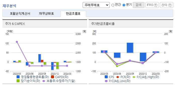 -2024년 3월 전년동기 대비 연결기준 매출액은 53.6% 증가, 영업손실은 98.4% 감소, 당기순이익은 64.3% 감소. 동사는 2020년, 2021년 및 2022년 감사의견 의견거절에 따라 상장폐지 사유가 발생함. 이와 관련하여 상장적격성 실질심사 대상 결정을 사유로 2021년 03월 26일~개선기간 종료('24.12.28) 후 상장폐지 여부 결정일까지 주권매매거래정지됨.